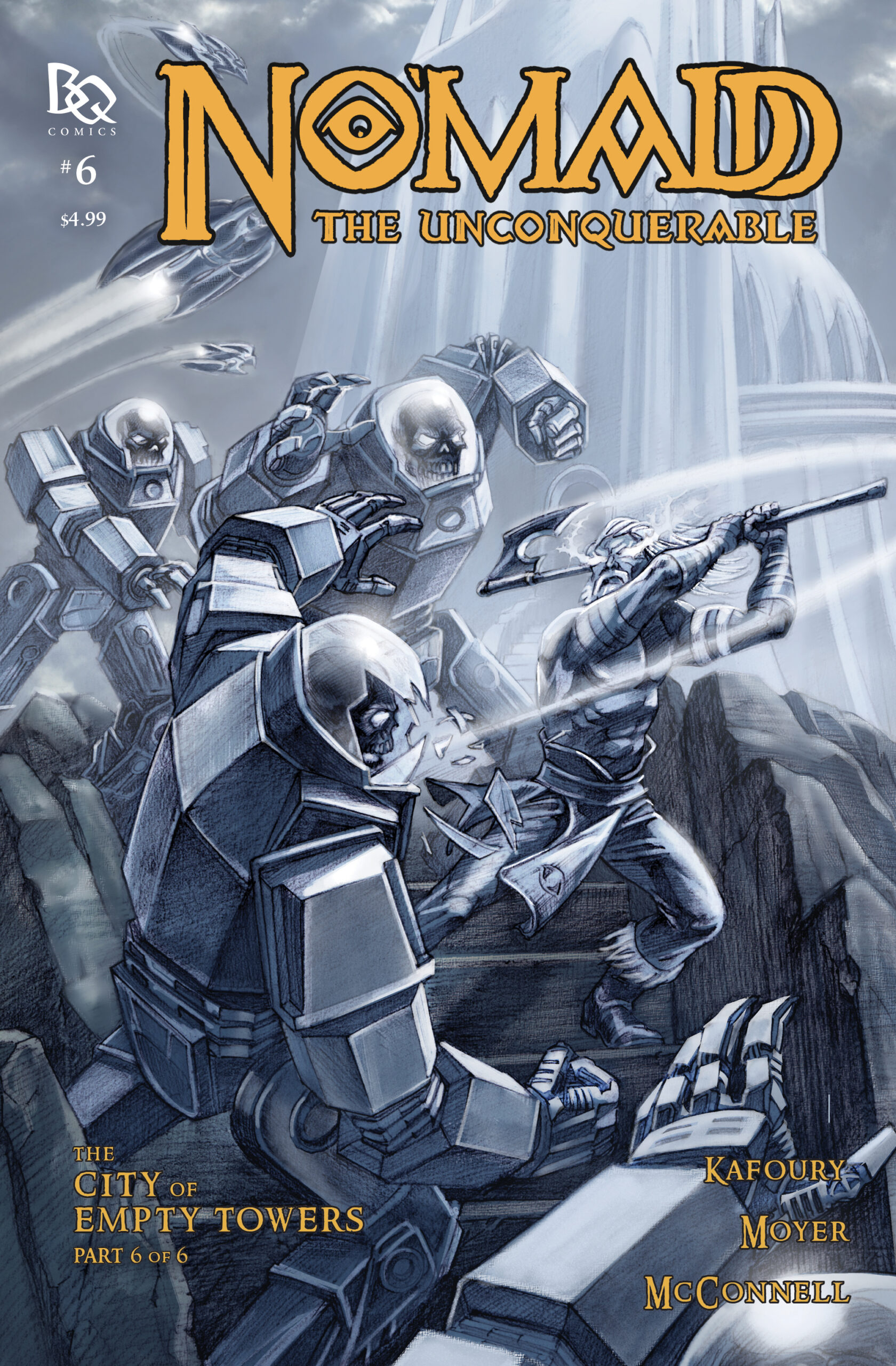 The (first) No’madd saga concludes, as No’madd: The City of Empty Towers #6 (of 6) can now be preordered online or at your local comic book store. (Previews Code: OCT221484.)